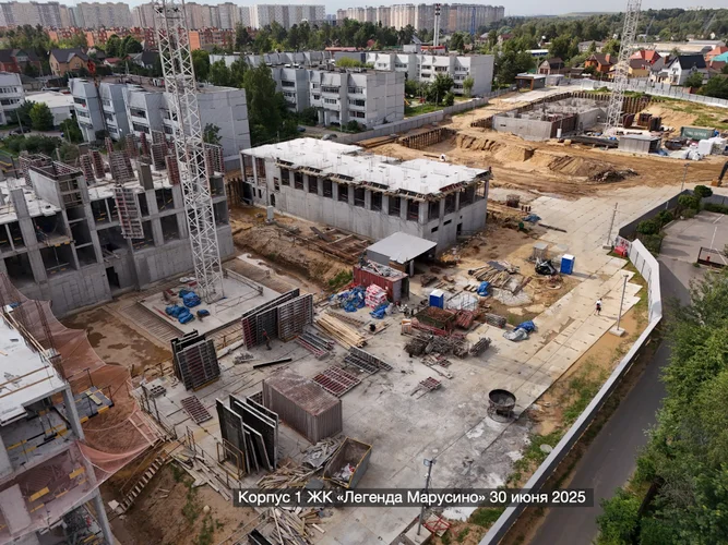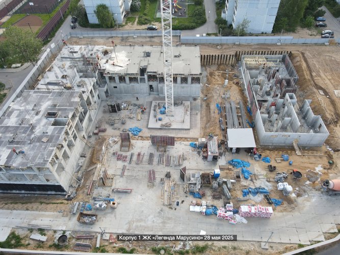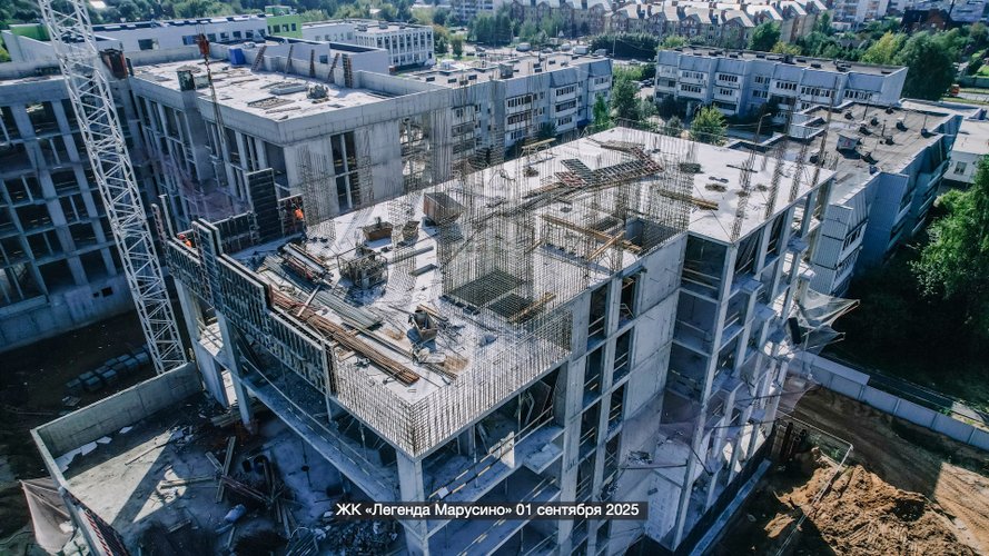 Монолитные работы: Основной объем монолитных работ в секциях 2, 3 и 4 завершен. В 1-й секции идет бетонирование плиты перекрытия 7-го этажа (60%).