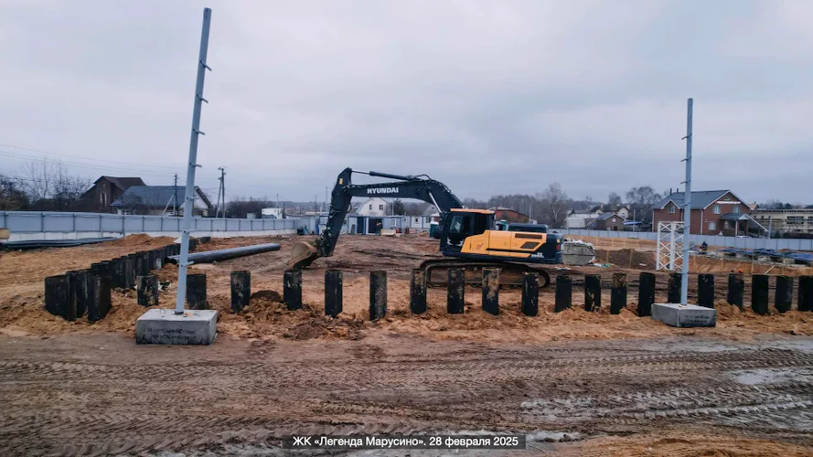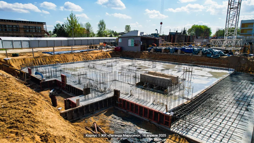 Паркинг и сети: Идут работы по устройству подземного паркинга: разработка котлована (90%) и монтаж фундаментов (60%). Прокладка наружных канализационных сетей выполнена на 30%.