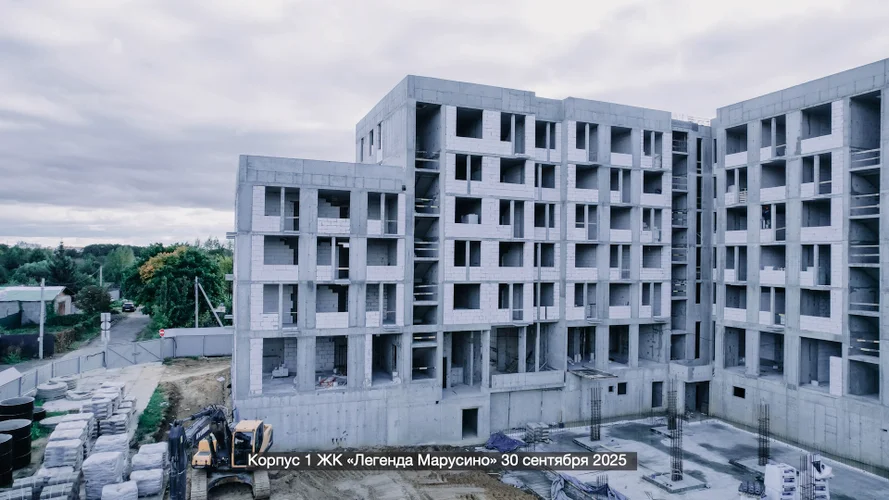 Кладка стен: Активно ведется кладка внутренних стен на 1-2 этажах (80%) и наружных стен с 3 по 7 этажи (90%).