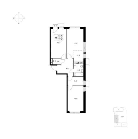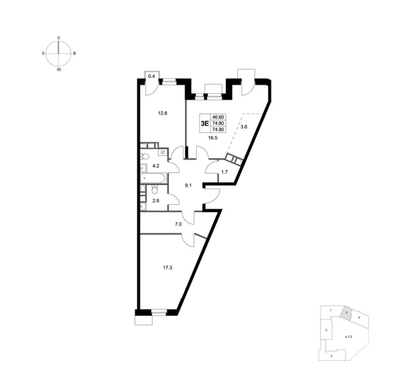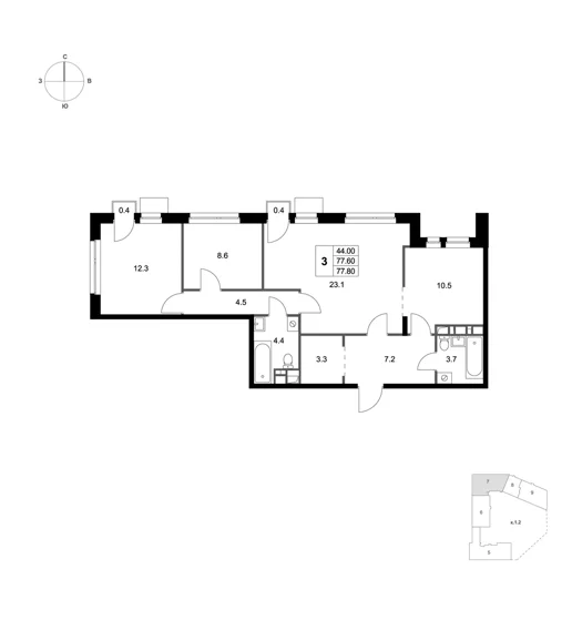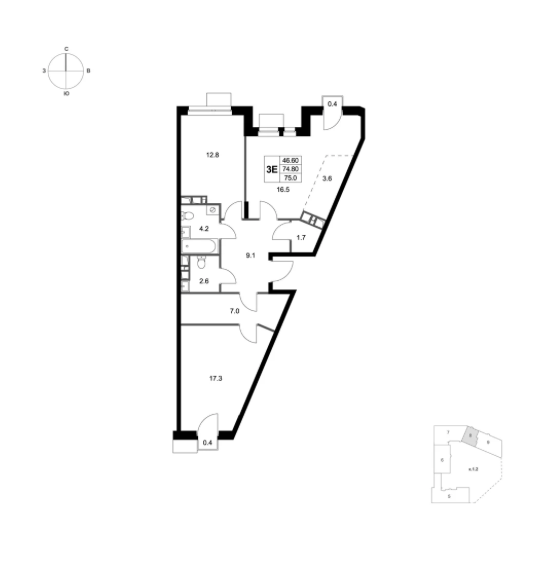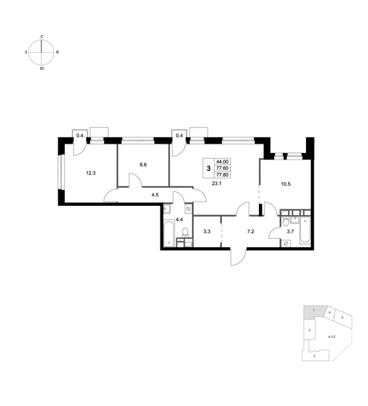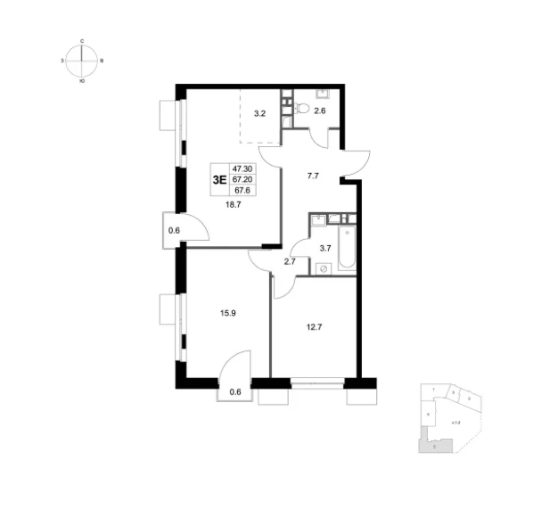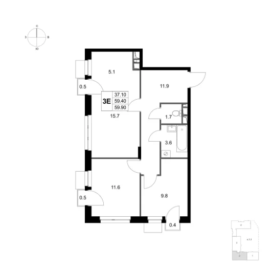 Площадь 3-комнатных квартир составляет от 59 м2 до 83 м2. Планировки отвечают потребностям семей с различным составом детей. Все квартиры спроектированы с учетом эргономики, инсоляции и приватности.